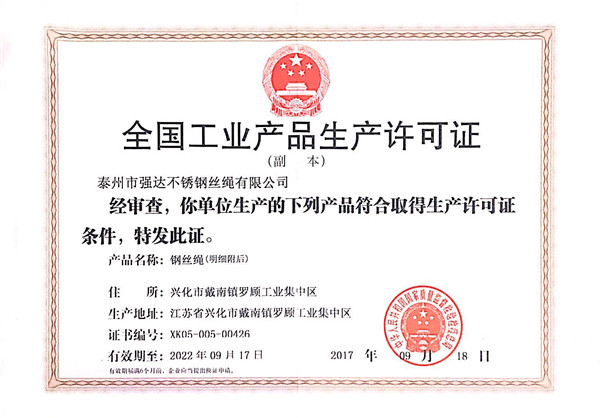 泰州市強(qiáng)達(dá)不銹鋼絲繩有限公司位于江蘇興化市戴南經(jīng)濟(jì)開發(fā)區(qū),公司致力于不銹鋼絲繩產(chǎn)品生產(chǎn),立志成為“國內(nèi)技術(shù)標(biāo)桿型吊索具生產(chǎn)企業(yè)”。以此戰(zhàn)略思想指導(dǎo),公司堅決貫徹“質(zhì)量贏市場,管理增效益,誠信贏天下”的質(zhì)量方針。以完善的服務(wù)在國內(nèi)不銹鋼絲繩市場樹立良好的品牌形象。公司榮獲“江蘇省質(zhì)量信得過企業(yè)。 靈活的管理機(jī)制,經(jīng)驗豐富的